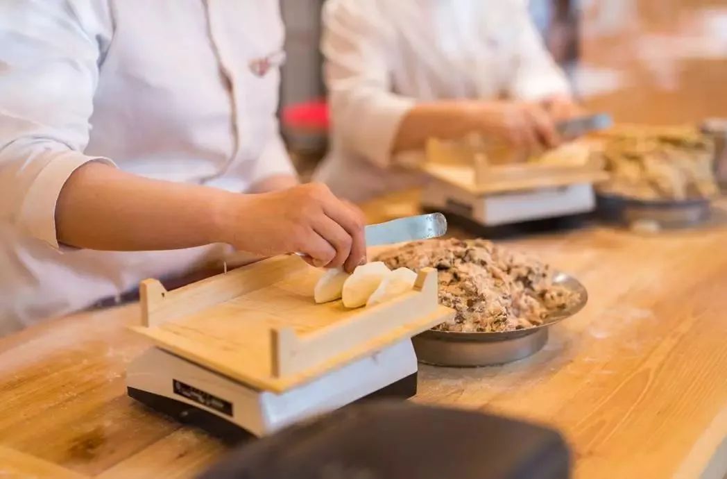 從餃子的大小、重量到餡料的制作工序,再到搟面杖的尺寸都有嚴(yán)格的規(guī)定。甚至為了保證面皮的質(zhì)量,還專門研制出了“餃子皮透視儀”,用以觀察面皮的均勻程度。