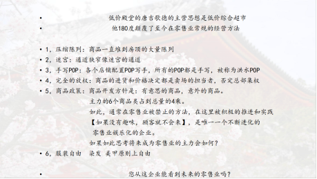 講到零售行業(yè)的進(jìn)化,片山分享了一個(gè)有趣的案例:唐吉訶德大膽打破傳統(tǒng)標(biāo)準(zhǔn)化陳列,取消了“規(guī)整貨架”和“單一路徑”,轉(zhuǎn)而構(gòu)建“挖寶式體驗(yàn)”。
