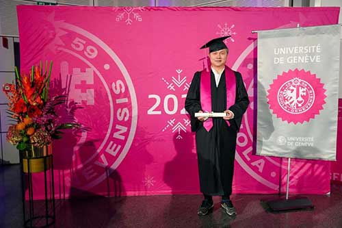 在莊重的畢業(yè)典禮上,多位重量級(jí)嘉賓的致辭為這場學(xué)術(shù)盛典注入了深刻內(nèi)涵。日內(nèi)瓦大學(xué)副校長Stéphane Berthet教授在致辭中強(qiáng)調(diào):"真正的教育應(yīng)當(dāng)成為跨文化對(duì)話的橋梁,在思想碰撞中孕育創(chuàng)新的種子。"
