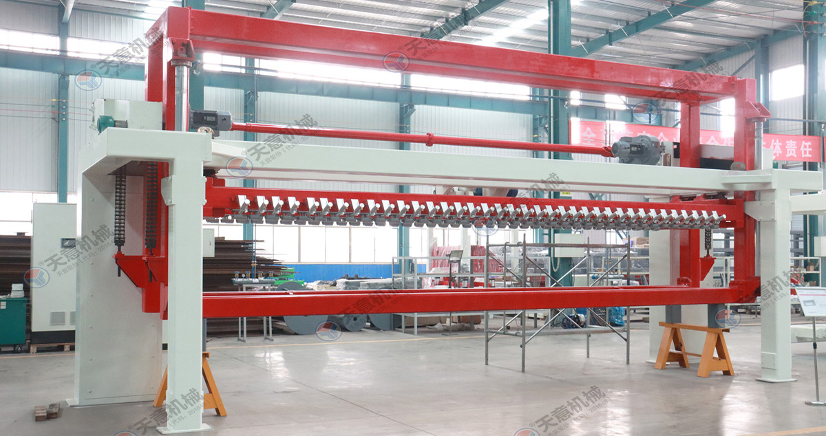 ALC生產(chǎn)線具有自主知識產(chǎn)權的去底皮翻轉(zhuǎn)臺的研發(fā)成功,解決了長期困擾加氣行業(yè)的“六面去皮”問題,使得切割廢料完全回收。