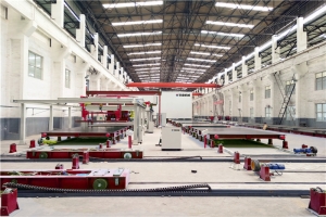 PC構(gòu)件生產(chǎn)流水線(xiàn)采用現(xiàn)代工業(yè)做法,工作模臺(tái)流轉(zhuǎn)作業(yè),實(shí)現(xiàn)住宅預(yù)制構(gòu)件批量生產(chǎn),將傳統(tǒng)現(xiàn)澆工地大量立體分散的工作,轉(zhuǎn)移至工廠,大幅提高了功效,同時(shí)大量節(jié)省人工。